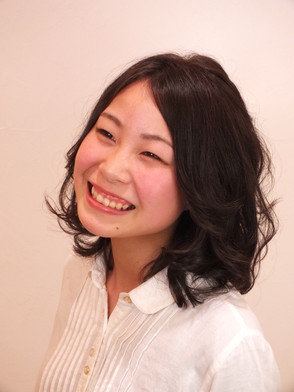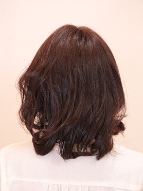 ハーフドライ後、ムースをつけて自然乾燥。 その後、全体をほぐしてから毛先にワックスをつけて仕上げる。